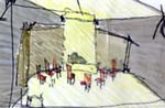 Sketches by Susan Jones show the concept of the chapel taking shape. |