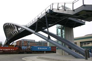 The Helix Bridge is a striking feature in Interbay’s industrial landscape, linking the city with the shoreline and crossing nearly a dozen railroad tracks.