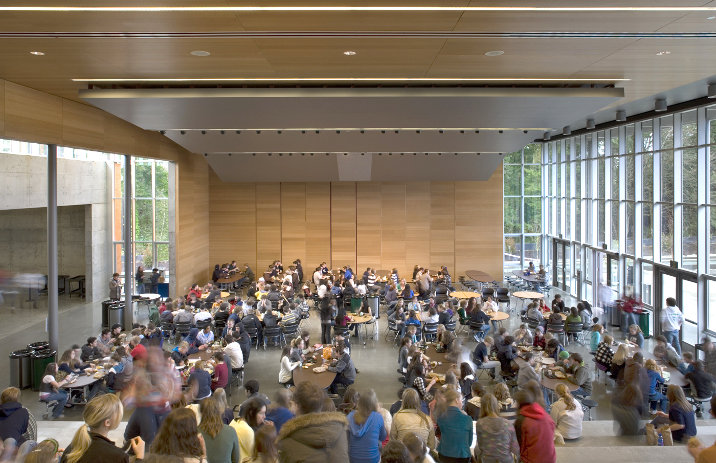 The Commons is in demand as a performance venue for all of Bainbridge Island. It’s a kind of indoor amphitheater, with wide concrete steps that follow the slope of a hill. Most of the time it serves as an eating and meeting area for students.