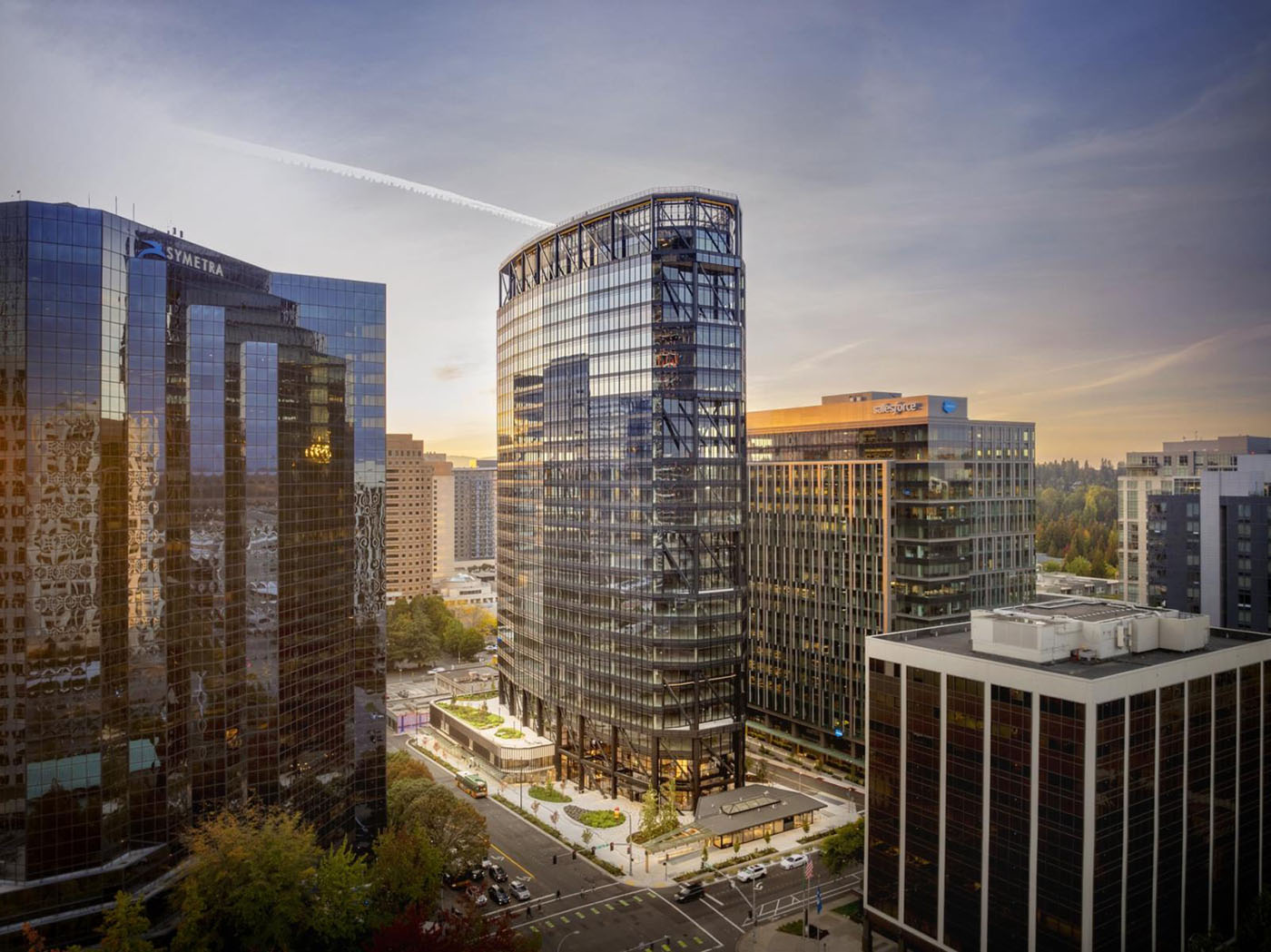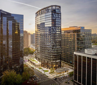 The Eight, a new 25-story office tower at 10770 N.E. Eighth St., creates a prominent mark on the Bellevue skyline.