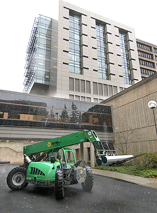Sunbelt Rentals provided the biodiesel-fueled forklift on this hospital expansion job in Portland. Sunbelt plans to increase its biodiesel fleet of rental equipment.