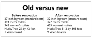 The 930,000-square-foot project included complete demolition and reconstruction of the lower bowl and south grandstand; renovation of the Don James Center; installation of permanent east end zone seating; and construction of a 200-stall, 75,000-square-foot parking garage below the south bowl and stands. The south grandstand also has a 33,000-square-foot sports medicine clinic.
