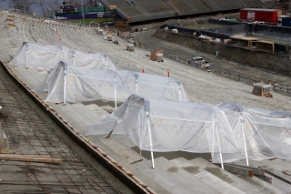 As the concrete subcontractor, Turner was the largest presence on site. Having control over the concrete cast-in-place seating bowl contributed to its ability to control the schedule and lead by example in safety and quality. The concrete team developed a portable tent system to move up the bowl as pours were made to ensure that typical Seattle weather did not impact the pour schedule or concrete quality.