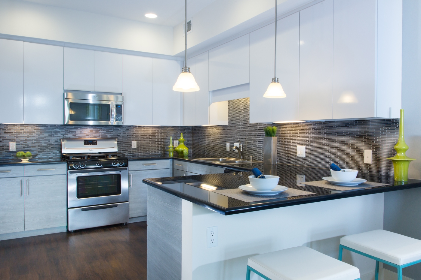 Units arrived at Domain Apartments in San Jose with granite countertops and stainless steel appliances already installed.