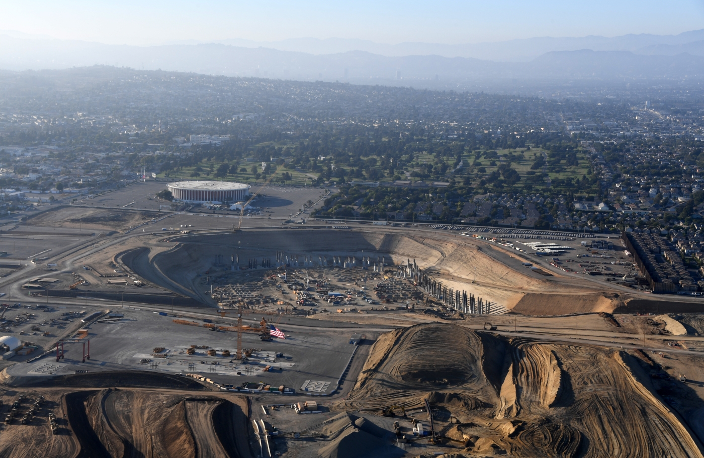 LA Stadium and Entertainment District at Hollywood Park is under construction in Inglewood, Calif. The venue is a proposed site for the opening and closing ceremonies of the Olympics.