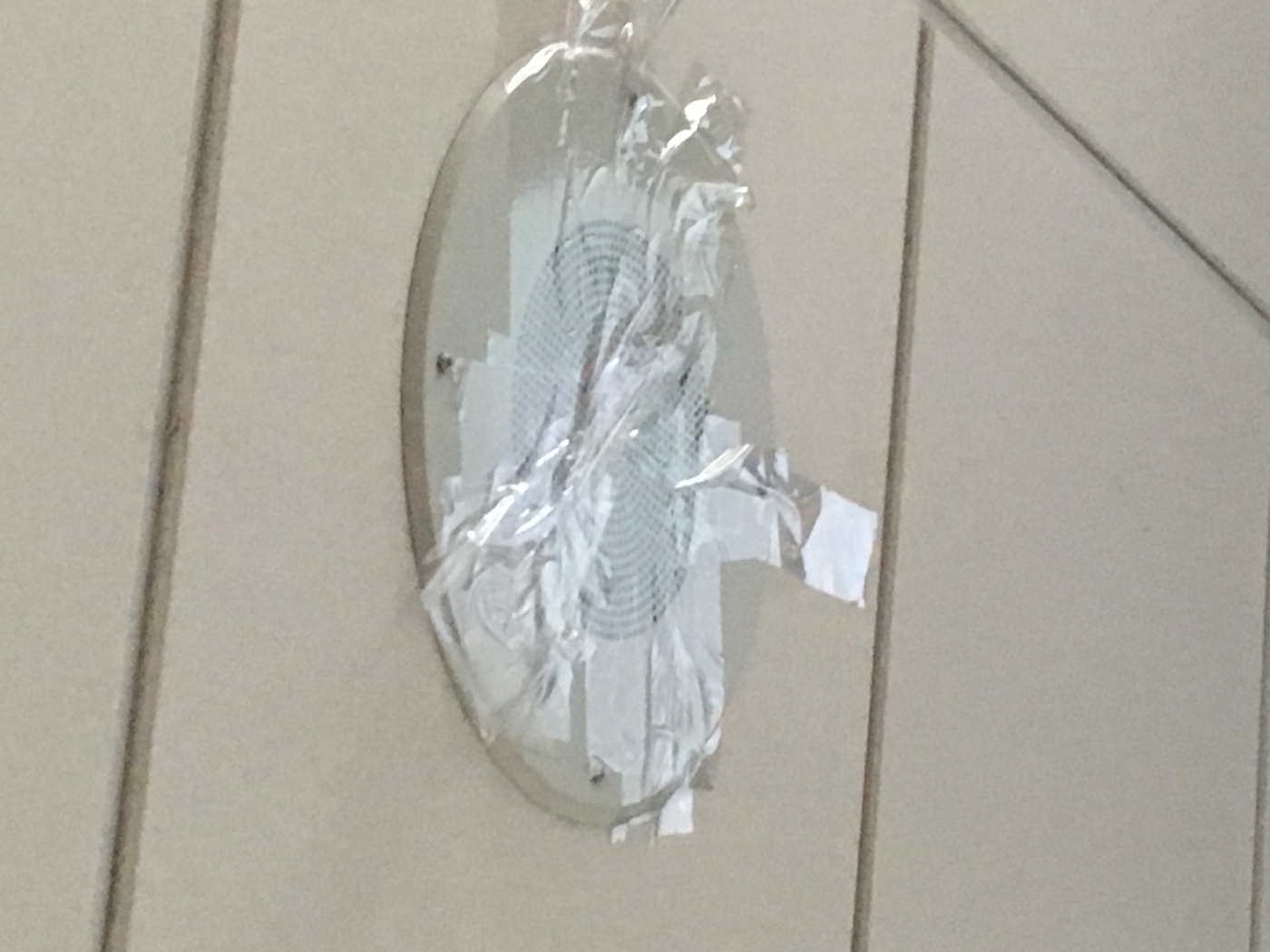 An occupant taped over a speaker in an attempt to turn down the volume.