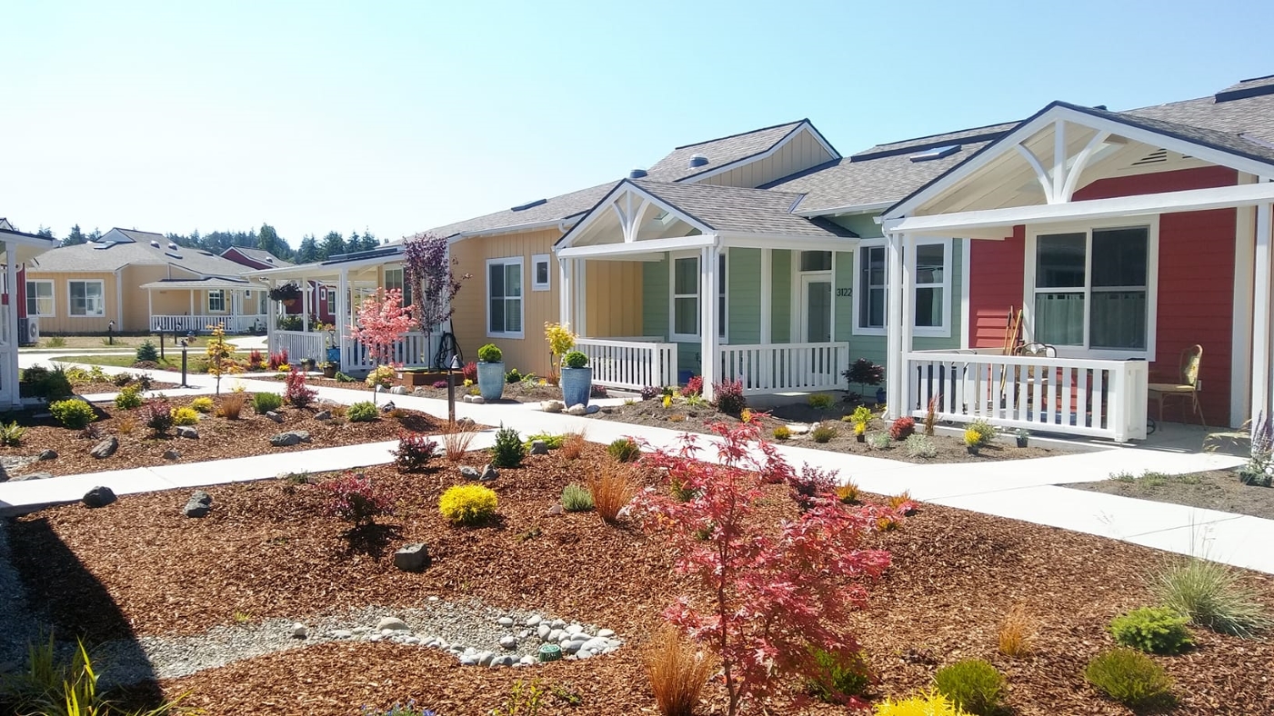 Units at Quimper Village are close to one another to encourage resident interaction.