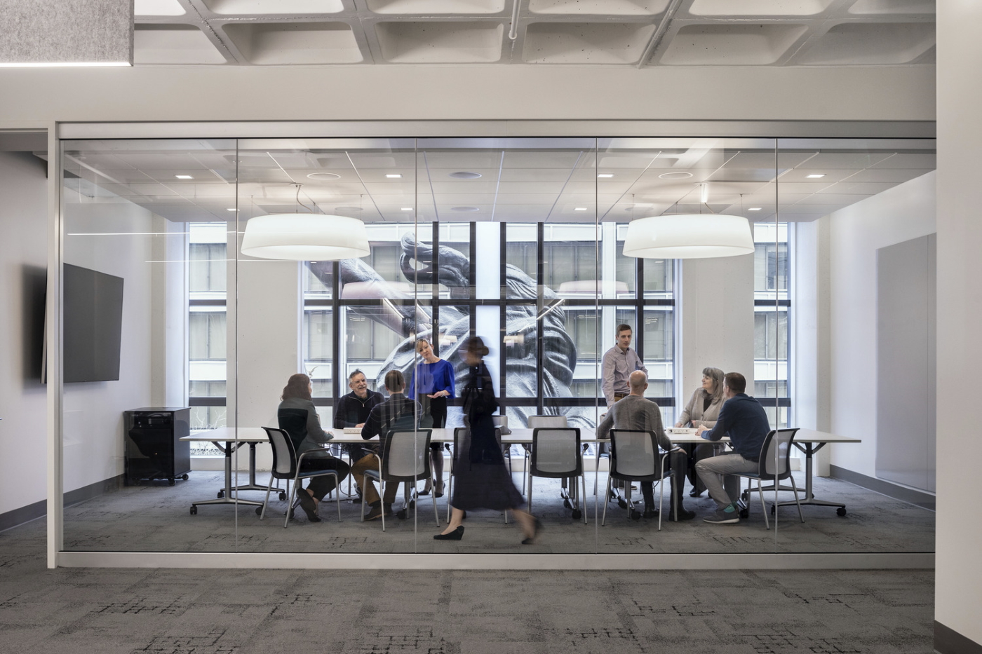 Once criticized for its lack of natural light, the building’s renovation opened up interior spaces and included new windows that allow more light to enter.