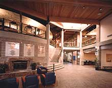 The concept for Spokane's new $5 million YMCA at 2421 N. Discovery Place is a "high-tech lodge." Organic, exterior shapes and textures are brought inside to give a sense of comfort and appropriateness to traditionally outdoor activities.