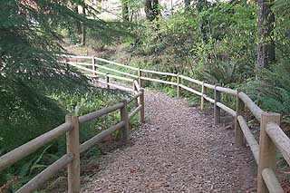 The entrance to the site features a cascading waterfall that abuts natural open space. A walking trail and footbridge cross a wetland to a nearby city-owned park. On the opposite side of the entrance is a full-size tennis court placed on top of an underground stormwater detention vault. Narrow, winding streets are another amenity, adding to the pedestrian feel of the neighborhood.