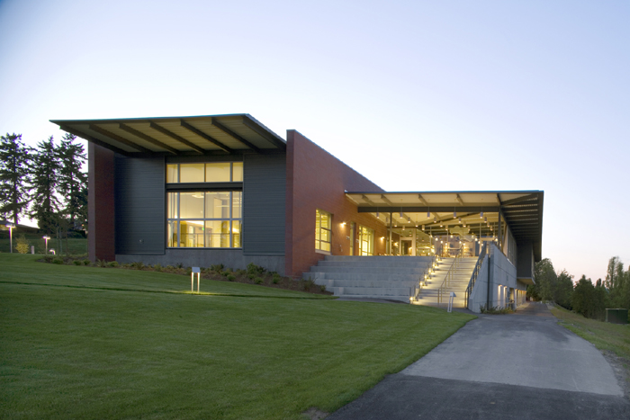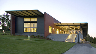 The building is sited to take advantage of Lake Washington views.