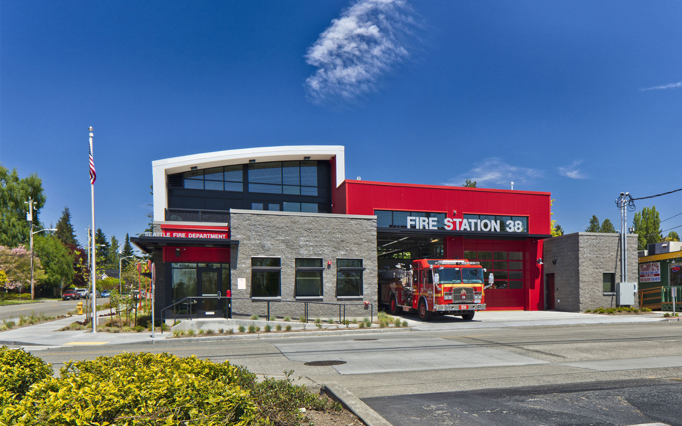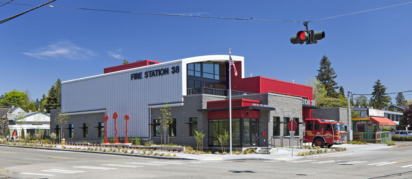 Seattle Fire Station 38 is located on a reclaimed brownfield in the Hawthorne Hills neighborhood, and replaces a historic single-truck station.