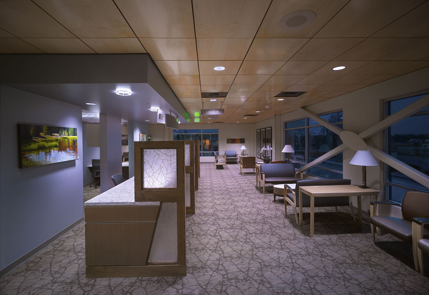 The space had to work for multiple providers working in different specialties. Shared work areas help to eliminate wasted circulation. In primary care areas, an open spine connects each suite, reducing the number of footsteps between each exam and treatment room.