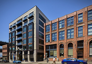 Work was finished in May on 80 Main, a seven-story apartment building near the waterfront in Pioneer Square.