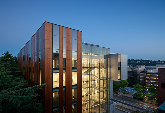 The University of Washington's new Life Sciences Building, located along Northeast Pacific Street, was designed to encourage team-oriented science.