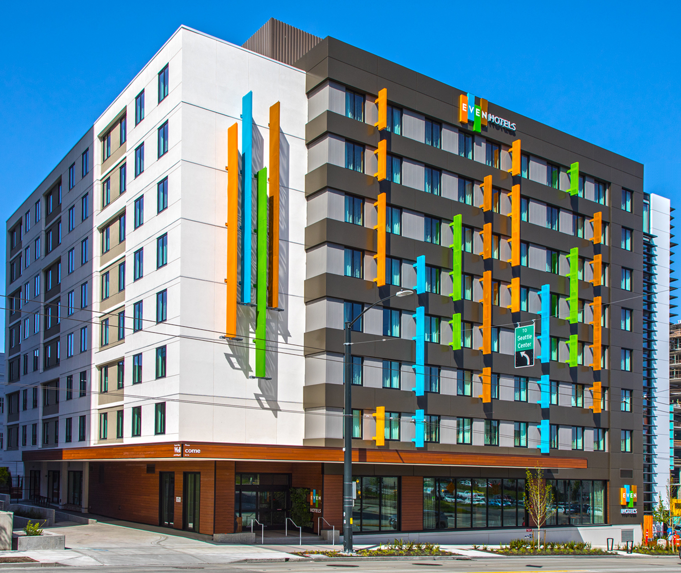 Two hotel brands — Even Hotel and Staybridge Suites — share a new nine-story, 235-room building at 527 Fairview Ave. N. in South Lake Union.