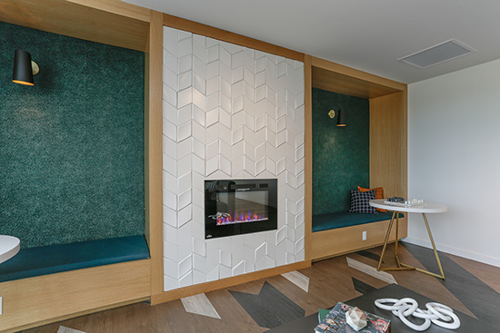 Amenities include a bourbon lounge, pet spa, rooftop deck, fitness loft, and repair station and storage room for 23 bikes.