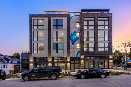Phinney Flats is a new 54-unit mixed-use building at 6726 Greenwood Ave. N. in Seattle.