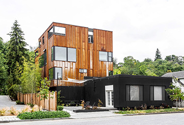 Located in West Seattle’s Delridge neighborhood, the Steel Stacks are four new townhomes built on what was previously a commercial lot.