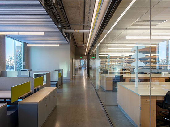 The modular labs can be easily rearranged to respond to the changing needs of research.