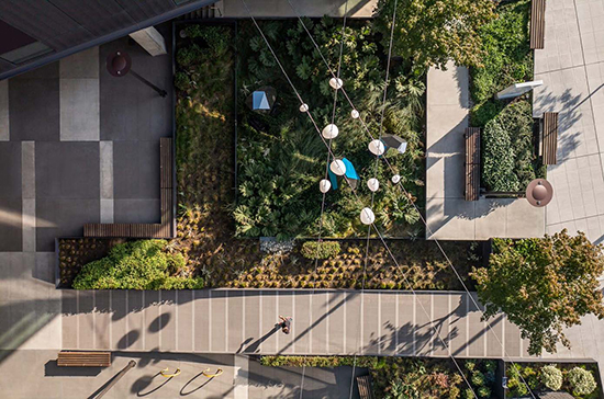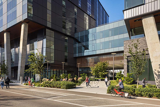 The certified LEED Gold project is designed to create a vibrant, pedestrian-oriented development with permeable street edges and generous open spaces.