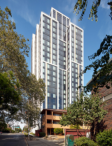 The Accolade is a 21-story student housing tower in the University District, with 597 beds and 226 fully furnished units ranging from studios to four bedrooms.