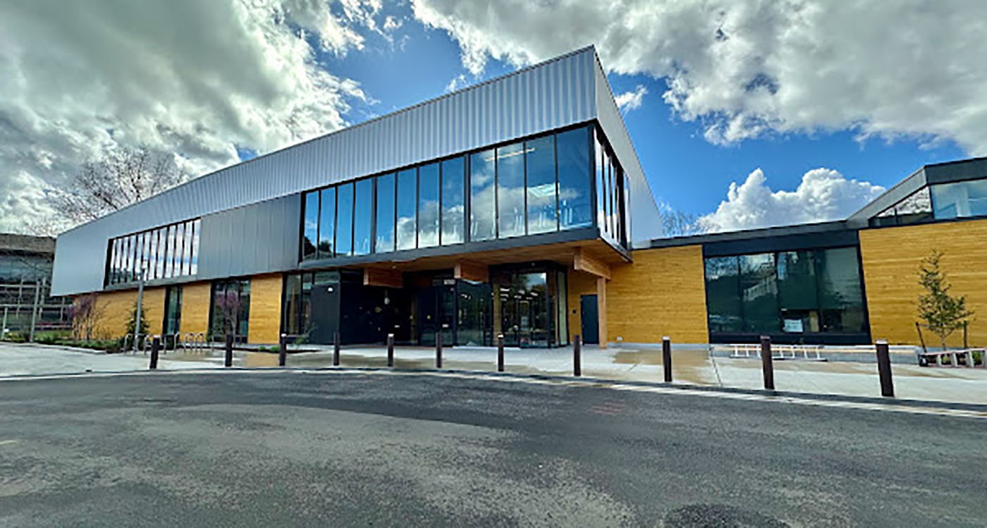 Sustainable design features include mass plywood panels built with wood products sourced from climate-resilient forestry, air-source heat pumps for efficient heating and cooling, all-electric building systems, and a 156 kW solar photovoltaic system to generate clean energy.