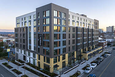 About four years ago, Trent Development began work on Nimbus, a 165-unit Everett apartment project, in the midst of the pandemic. It opened in late 2022, at 2701 Rockefeller Ave., on a former parking lot acquired from the YMCA of Snohomish County.