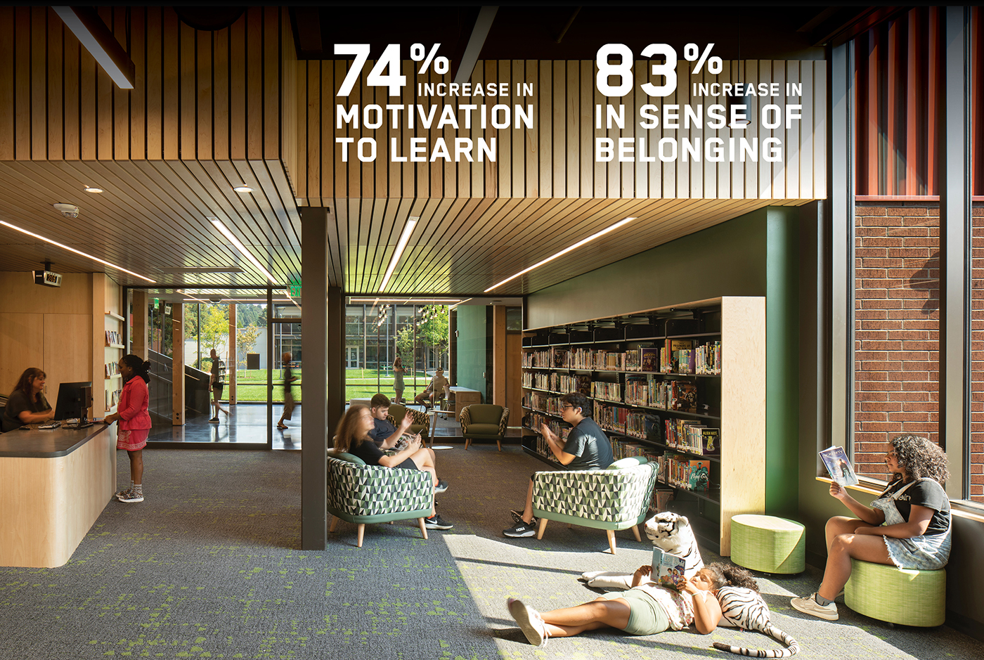 Established research points to the effectiveness of wellness design strategies, such as elemental human needs for daylight and connections to nature. For example, studies show a 12-24% increase in learning outcomes, as measured by test scores, when learning is conducted in balanced daylight environments with views of landscape and nature.