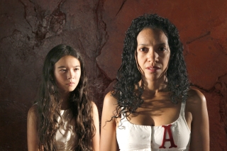 Izabel Mar as Pearl and Zabryna Guevara as Hester in “The Scarlet Letter,” which runs until Dec. 5.