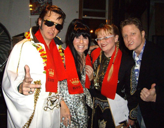 Jimmy Peschel, Marlow Harris as Priscilla Presley, Sweet Pea and Jim Dever at a previous (Elvis) Invitationals.