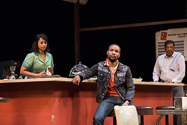 Nicole Lewis (Risa), Carlton Byrd (Sterling), Eugene Lee (Memphis) in August Wilson’s “Two Trains Running,” set in 1969.