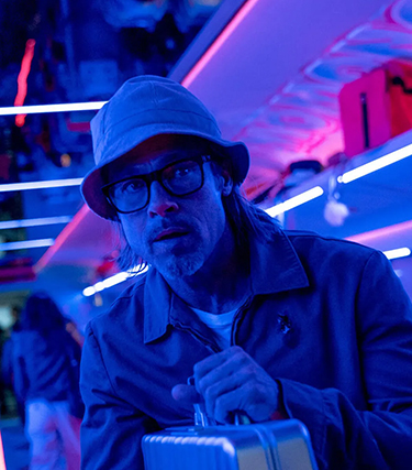 Aboard the speeding locomotive of “Bullet Train” ride at least five assassins, one venomous reptile (a snake on the train), countless glib Guy Ritchie-esque slo-mo action sequences, and one bucket-hat wearing Brad Pitt.