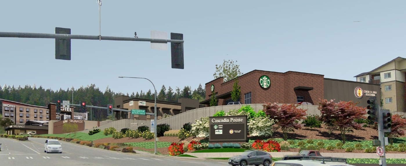 A little north of Kitsap Mall and Highway 3, Cascadia Senior Living recently developed the 189-unit Fieldstone senior community, which offers both assisted living and memory care. Cascadia is led by Justin Younker and Doug Ellison, who are now adding a retail component nearby: Cascadia Pointe. The four-building complex will be developed immediately south of Fieldstone. Steve Ruggiero of First American Properties is the broker, and he recently announced new tenants: Starbucks, Indigo Urgent Care and Dave's Hot Chicken, which is making its debut in our state. (It'll share a building with Starbucks.) Ruggiero said in a statement, “Not only are we bringing established brand names to the greater Kitsap marketplace, we also have the ability to accommodate a badly needed hotel or campus development.” Two buildings remain unclaimed, with 2,500 and 5,000 square feet. Completion is expected in the second quarter of next year.