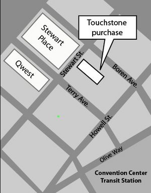 A representative of Boilermakers Local 104, Seattle Labor Union, which owns an adjacent building at Stewart Street and Boren Avenue, said Touchstone has approached it about buying that structure.