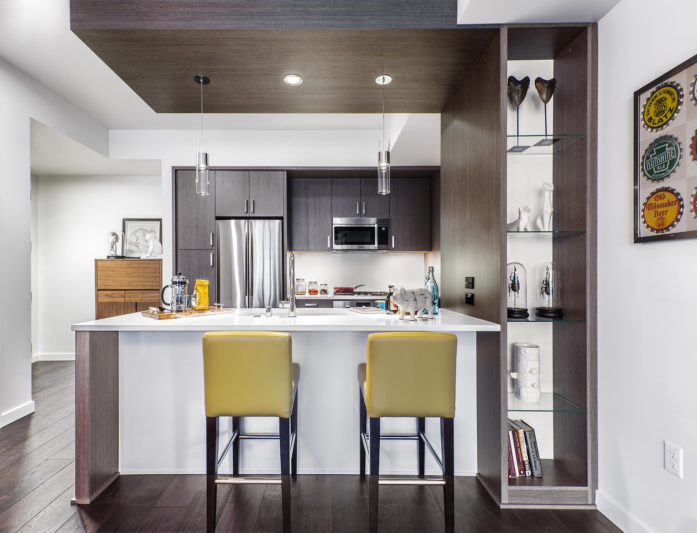 New high-end apartments have narrowed the quality gap with condos in recent years, but Lowe Enterprises' Suzi Morris said Luma is still a cut above in terms of fixtures, finishes and amenities. Lowe offers three color and material palettes for countertops and other features, with Bosch appliances and granite sinks.