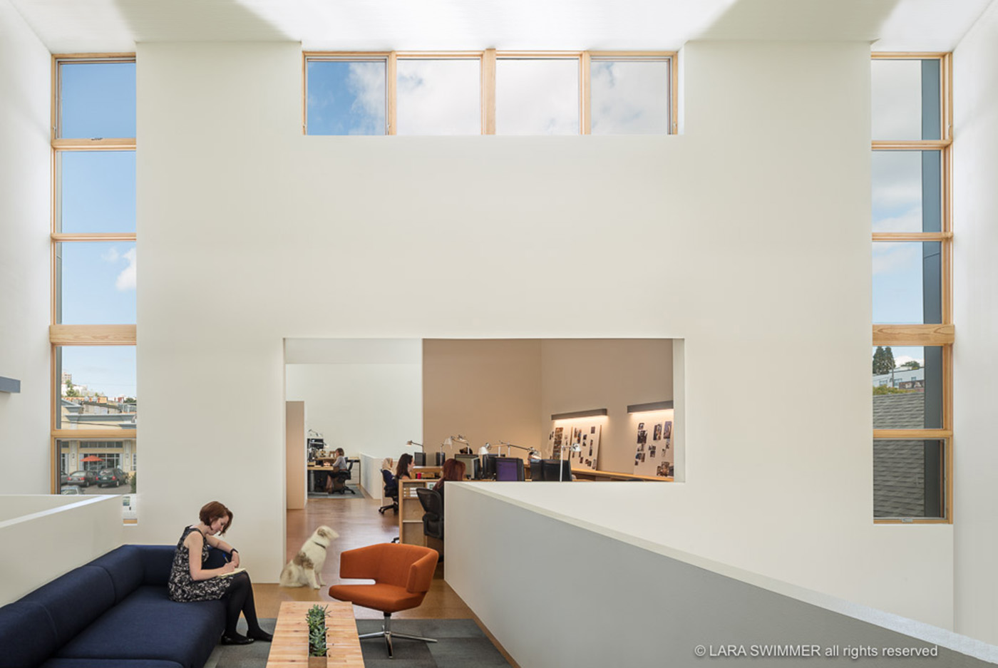 The north entry side has a partial mezzanine above that could—as the firm expands—be extended into a full floor.