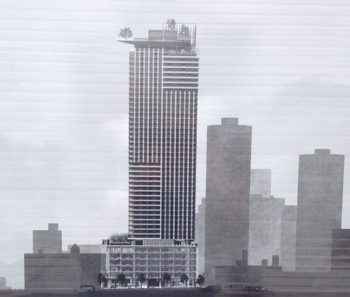 Public records now say the plan is for 459 condominiums in a 48-story tower with offices and retail in the podium. Westbank didn't confirm or deny those construction permit filings. It says it hopes to break ground in mid-2019 and finish in early 2022.