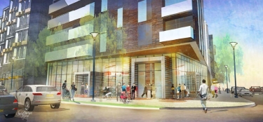 Retail/commercial space on both blocks would total about 25,000 square feet. The largest anchor retail bay would go on the site's southeast corner, facing the light rail station.