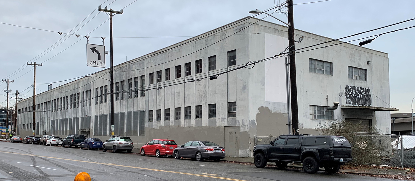 Down in SoDo near the stadiums, west of the Silver Cloud, is a vacant old warehouse/office building at 1051 First Ave. S. It was purchased by the state Department of Transportation over a decade ago, along with other adjacent property, for the viaduct replacement tunnel. Until recently, it served as the headquarters for the state's Alaskan Way Viaduct Replacement Program, which is gradually winding down.