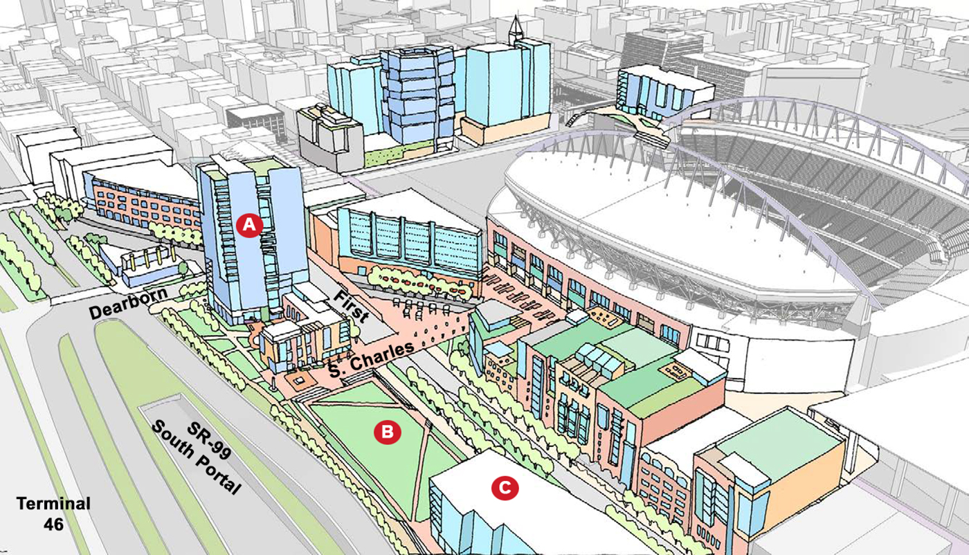 The prior study's various feasibility schemes were prepared long before the pandemic, which has forced everyone to reconsider the balancing of office space versus residential development. Some sort of park had also been contemplated there, possibly atop a garage, along with offices and apartments.