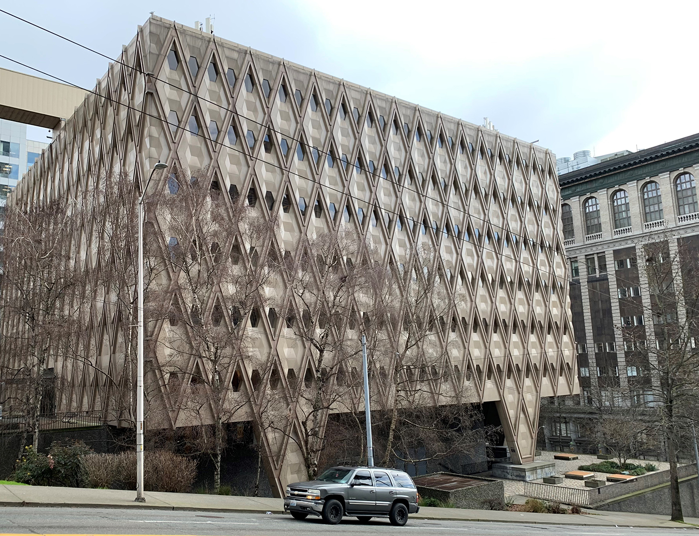 The county now has eight buildings on ten sites, some being full blocks. Its buildings total about 2.3 million square feet. The outlier is King Street Center, in Pioneer Square, which is too recent to raze. So, too, is the Chinook Building.