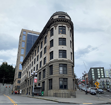 And a few steps south is the flatiron-shaped Yesler Building, which dates to 1909 (with a 1970s addition). That seven-story structure has floor plates with around 11,000 square feet; and that's a number that could allow for efficient division into apartments. Constantine said on Tuesday that the Yesler Building and courthouse were both in need of costly restoration. He didn't mention apartments.