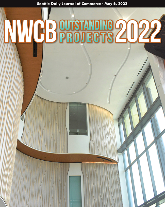 The judges were Peter V. Burns, director of technical services, Northwest Wall and Ceiling Bureau; Marc Chavez, former technical director for Perkins+Will; Bob Drury, former executive director of the Northwest Wall and Ceiling Bureau; Terry Kastner, executive director of the Northwest Wall and Ceiling Bureau; John Killin, executive director of the associated Wall and Ceiling Contractors of Oregon and Southwest Washington; Rick Miller, executive director of the Northwest Wall and Ceiling Contractors Association; Gabriel Quintana, architectural consultant, Northwest Wall and Ceiling Bureau; and Jeff Shearer, former president of Fred Shearer and Sons, consultant to the wall and ceiling industry.