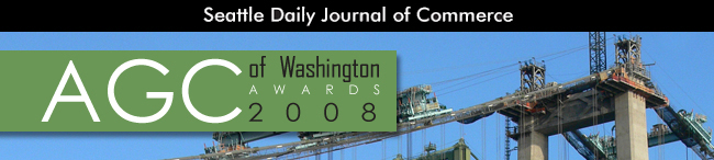 The grand award winner in construction went to Tacoma Narrows Constructors, a joint venture of Kiewit Pacific Company and Bechtel Construction, for the new Tacoma Narrows Bridge. BNBuilders received the grand award for safety, and P.J. O’Brien of John Korsmo Construction was named superintendent of the year.